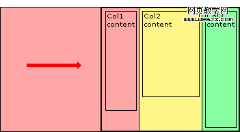 為了讓這一結構在所有浏覽器中正確工作,容器 div 必須浮動(左或右),同時每一個內容列的 div 也要浮動,哪種方式並不重要。浮動內容 div 的進程使它們在頁面中排列在一條水平線上。浮動容器使其自適應到最高列的高度。如果不浮動容器,內容 div 將會從容器底部溢出,容器不會擁有正確的高度。事實上在此例中,容器不浮動的話其最終高度為0。