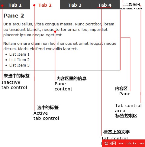 為了統一叫法以便於進行討論,我們先花時間來認識一下Tab元素的每個構成部分。