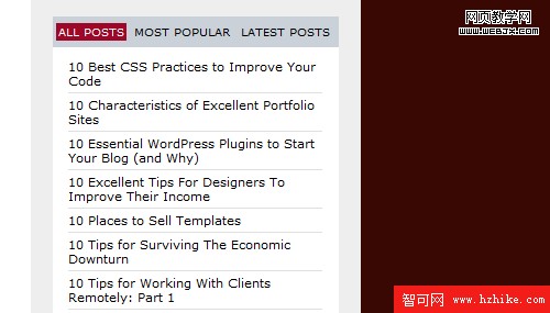 下圖是網站Webdesigner Depot的側邊欄上的Tab元素:“全部文章 | 最受歡迎 | 最新更新”