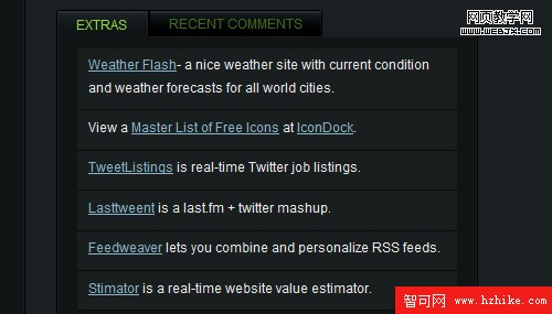 web界面的設計趨勢是縮短頁面屏長,降低信息的顯示密度,但同時又不能犧牲可視的信息量。在這種趨勢下,Tab 這種交互元素成為了一個越來越普遍的應用。例如在Blog界面的設計中,人們在側邊欄使用Tab模式來顯示 ”最新更新|最熱更新“ 的文章列表以引導用戶快速跳轉到文章內容頁,這種模式令頁面結構緊湊同時在視覺上不那麼喧賓奪主。