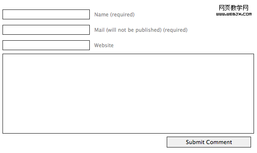 一個好的評論表單設計,應該是label和input越靠近越好,如果label在input之上那是相當完美的位置啦,但是實際操作可能需要考慮到實際的產品需求,字段的多少。大多數表單都是先‘姓名’,接下來‘Email’,其次是‘網址’,最後是‘評論框’這樣排列,幾乎所有的博客和網站的評論框都是用這樣的排列方式,但是否這樣的方式是最好的方式?
