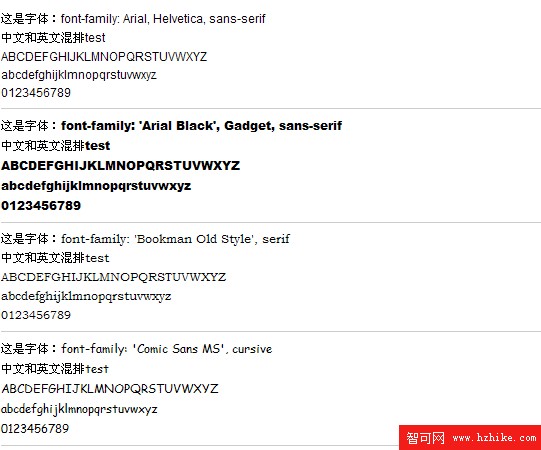 很佩服國外一些前端開發人員對待學問的研究精神,他們很善於總結發現。看到一篇關於安全字體List of Web Safe Fonts的文章,裡面總結了所有的安全字體的樣式,當然都是英文的。