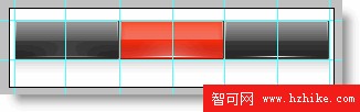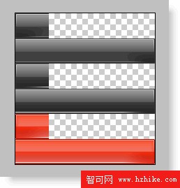 我們將這三個按鈕分別表現為鼠標移開、點擊後、鼠標移上時的三種狀態,要做滑動門菜單,需要將一個按鈕從中間剖開,左邊圖處放在左側,右邊圖片放在右側。要適應文字加長的情況,還要將這個圖層寬度拉長一點,但這個圖片有很復雜的陰影特效,不能隨便拉伸,否則效果就不像了。我們就從中間給它剖開,將右邊圖片的左側向前平輔拉伸。如圖二所示