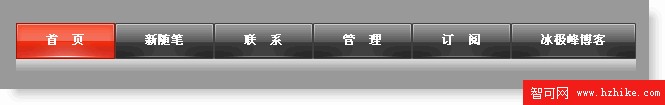 該要的圖形都准備好了,接下來,我們將這個圖片加在菜單項上吧。一個按鈕要用到兩張圖片才能表現出來。地球人都知道,一個標簽只能裝一張圖片(如果你發現一個標簽能裝上兩張圖片,請及時告訴我,我請你吃飯!)。哦!我的菜單結構中每一項剛好有兩個標簽,一個是li,它裡面有一個A標簽,剛好可以用來裝左右兩張圖片。Li用來裝左側的圖片,A用來裝右側的圖片。我真佩服我自己,這麼好的點子都能想得出來,正在沾沾自喜的自我陶醉中…