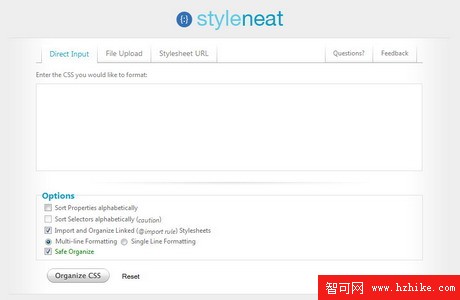 『Styleneat』CSS 文件結構格式重新組織服務,可以將書寫風格凌亂的 CSS 文件按照層疊式結構重新組建,方便您進行閱讀和研究,十分實用的一個在線工具。