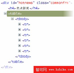 #newnews 和 #hotnews 結構相同 ,都是一個標題和一個表格,其中表格用來顯示具體的新聞內容,兩個塊之間也設置了float:left和width:560px以實現和左邊的列#category並排顯示在同一行的效果,接著定義margin-left 和 margin-right ,區分出各自的范圍。。