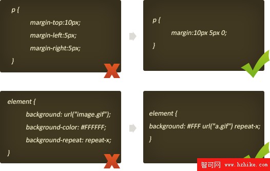 CSS簡寫可使開發工作變得更加容易,並讓你的CSS保持簡潔、更小而且更易用。這裡是一些示例: