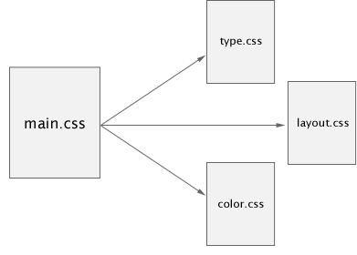 main.CSS文件包含了站點的所有樣式規則,考慮將其拆分成包含版式、布局和顏色的獨立樣式表,相應地命名為:type.CSS, layout.CSS, color.CSS.