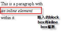 典型的例子是xHtml中的a元素,另外如strong,em。因為內聯元素不會打斷其前後的