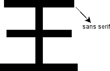 serif 的意思是,在字的筆畫開始及結束的地方有額外的裝飾,而且筆畫的粗細會因直橫的不同而有不同。相反的,sans serif 就沒有這些額外裝飾,而且筆畫粗細大致上是差不多。