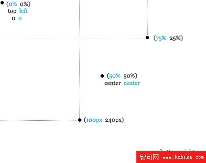 實際上, 不聲明此屬性, 即默認背景圖片為左上角顯示. 值得注意的是, 當用屬性值為位置名稱時, 先寫距離上邊框的數據(top), 後寫距離左邊框的數據(left). 而當用百分比或是具體數值表示時, 則反過來寫.請讀者仔細看看上圖的藍色和黑色部分的順序.