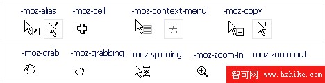 Values 屬性值cursor:-moz-alias | -moz-cell | -moz-context-menu | -moz-copy | -moz-grab | -moz-grabbing | -moz-spinning | -moz-zoom-in |-moz-zoom-out