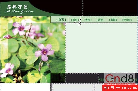 1. 用Dreamweaver 打開網頁,當鼠標單擊後,您可以看到導航欄已經完成的切片,我們現在要制作的是鼠標移上時的翻轉效果,如圖1-4-1 所示。