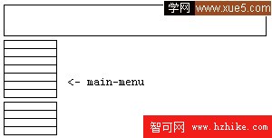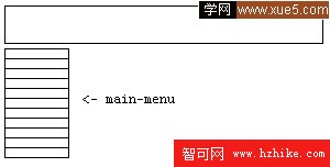 喏,老板要來一點不同的,讓把導航欄放在左側。這個沒問題,用一個ul就搞定拉。我把它的id設置成main-menu但是過了一會兒,他說,嗯,為了可用性(咳咳。。),我們需要把菜單分成兩部分。就像: