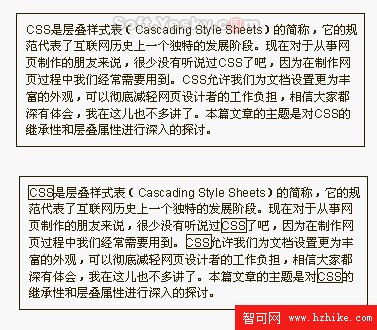 這段代碼的應用結果是:“CSS的層疊和繼承深入探討”這段話是紅顏色的,“層疊和繼承”由於應用了strong元素,所以是粗體。這很符合制作者的意圖,也是為什麼繼承是CSS的一部分的原因。