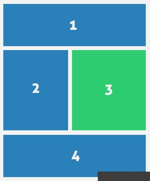 在這個例子中,我們將有兩個類型的內容:主要內容和次要內容。區域1,2和4中我們填充主要內容,而次要內容將顯示在區域3,見下圖。