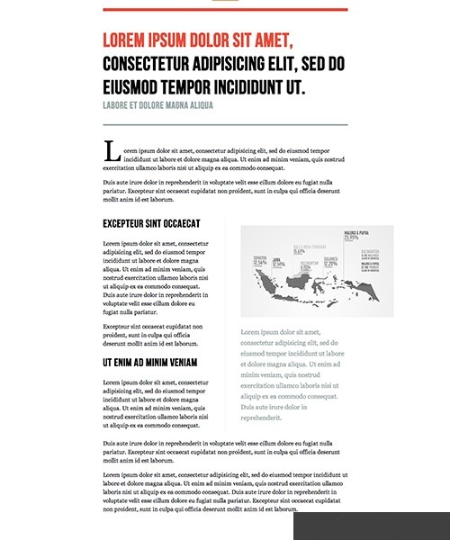 CSS3區域模塊是不受結構限制的,因此我們可以簡單地把次要內容部分的html添加到主要內容外,正如我們上面提到的,我們將在主要內容的中部顯示次要內容。
