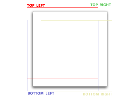 在這個例子中, 這是個圓角box, 有點投影, 還有點內部陰影. 這就意味著這個box的四個角顯然是不同的. 這裡的挑戰是圖片是不能延展的.我們需要一種方法, 讓四個不同的圓角圖片分別應用到box的四個角上.
