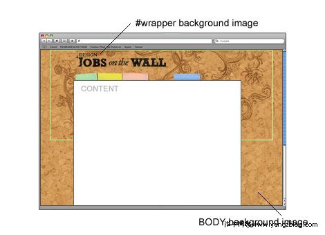 給body標簽應用了重復的軟木板的圖案,然後給wrapper標簽應用了居中的背景圖案。