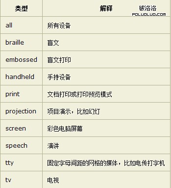 從上面的例子可以看出,字符間以空格相連,選取條件包含在小括號內,srules為兼容設置的樣式表,包含在中括號裡面。only(限定某種設備,可省略),and(邏輯與),not(排除某種設備)為邏輯關鍵字,多種設備用逗號分隔,這一點繼承了css基本語法。