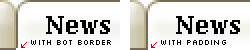 我們必須讓“當前”標簽覆蓋邊框,如下面提示的那樣。你也許會認為我們將要把底部邊框加入到與其顏色相對應的、#header背景圖像中去,然後將“當前”標簽的底部邊框顏色改為白色。但是,對於挑剔的觀察者,還是會發現一些細小的差別。於是,我們改變錨鏈的padding,為“當前”標簽創造出直角來,如下面放大的例子: