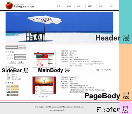 下面,我們需要根據構思圖來規劃一下頁面的布局,仔細分析一下該圖,我們不難發現,圖片大致分為以下幾個部分: