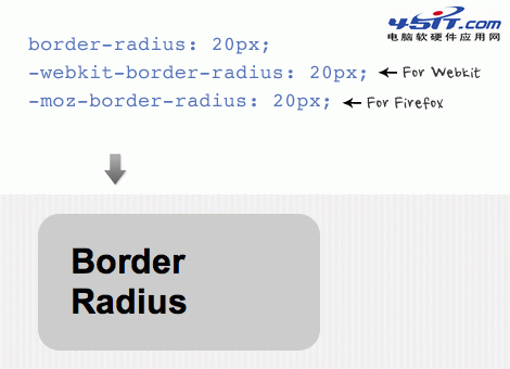 border radius(圓角)的速記法和padding和margin屬性類似(例如border-radius:20px),為使浏覽器能識別圓角屬性,需添加特定的前綴,如”-webkit-”針對webkit浏覽器,”-moz-”針對Firefox。