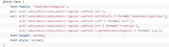 文件的路徑是相對於CSS文件而言的,因此,它們應放在css目錄下的websymbols中(css/websymbols/)。