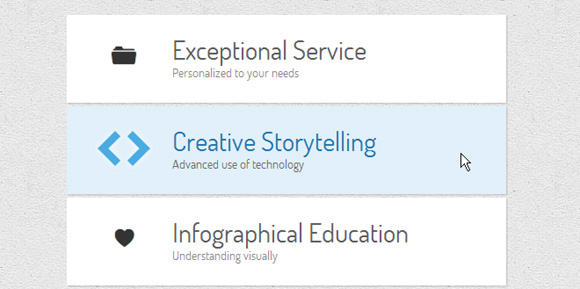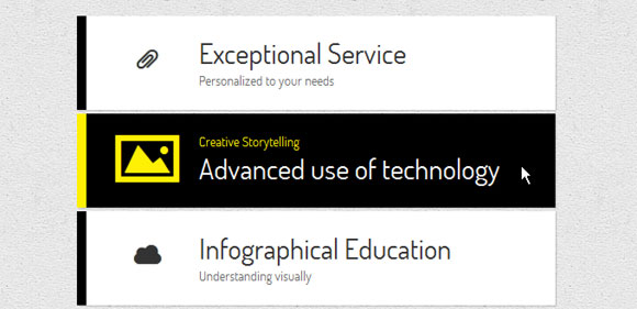 CSS3新增添了實現動畫效果的新功能,通過本文,你可以對這些新功能有個初步了解。本文將為大家帶來一些充滿創意的菜單懸停效果。它由圖標,主標 題,副標題等簡單的元素構成,通過CSS3最新的過渡(transition)和動畫(animation)兩個功能實現鼠標懸停時的動畫效果。我們用同 樣的元素做出了9種不同的效果。