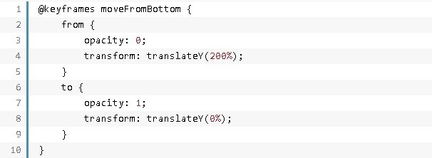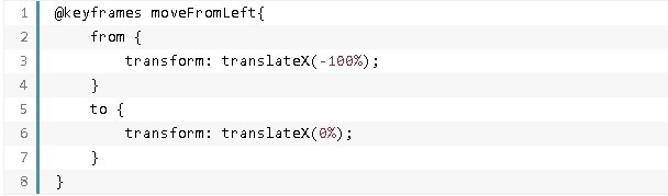 將translateX的值設為100%即可實現從右向左(moveFromRight )的動畫效果。