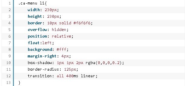 為了創建環形,我們要把圓角的值改為元素的外寬度/高度的一半。 將所有元素全部放在列表項中,並居中。下面我們實現鼠標懸停時的效果。