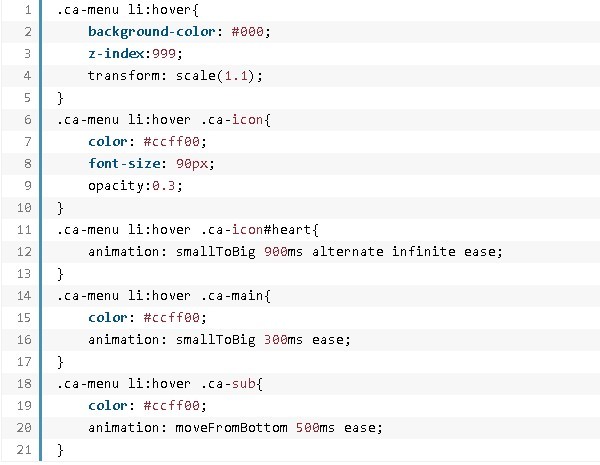 菜單中的心形圖標還有一個特殊的切換效果。當鼠標懸停時,通過運用由小變大和不斷循環交替的特殊方式來實現可愛的心跳動畫效果。