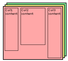 <div id="container3"> <div id="container2"> <div id="container1"> <div id="col1">Column 1</div> <div id="col2">Column 2</div> <div id="col3">Column 3</div> </div> </div> </div>