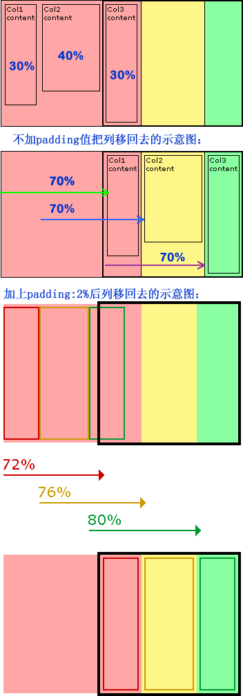 前面我們對三個內容元素都進行了相對定位,現在只需要按第五步將其定位回去,如上圖所示。其實說到最後,你只要理解了這兩幅,你就什麼都清楚了。