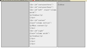 <div class="contanier"> <div class="column" id="left"></div> <div id="content" class="column"></div> <div id="right" class="column"></div> </div>