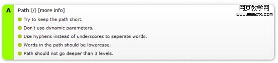 此處有分數評級,綠色代表符合標准,黃色代表警告、小問題,紅色代表問題嚴重、需要重新優化