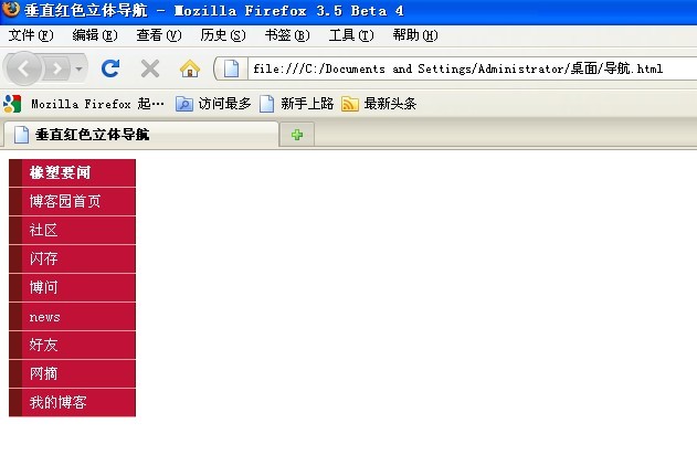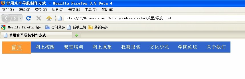這個就是最常見的導航條制作過程了,實現了鼠標訪問前懸停,以及釋放離去的效果。