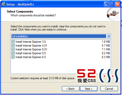Mutiple IE確實是一個非常好的測試工具,強烈推薦的同時感謝!Mutiple IE非常好用,體積也不大,才10.3M,裡面包括從IE3.0到IE6.0的所有版本,安裝時可以根據您的需要自由選擇,而且和IE7也沒有沖突!對WEB開發人員來說這個工具是不可或缺的!