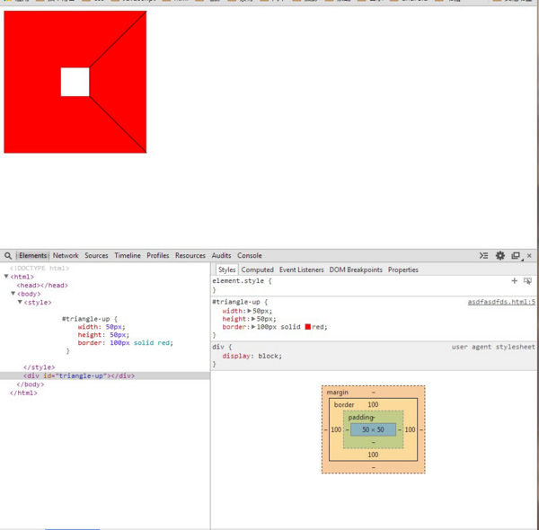 利用CSS的border以及它的屬性值transparent來實現三角形,其中最主要的是要明白由於div的高度跟寬度都為0,margin,padding也