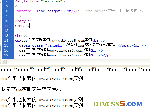 可以看到演示css font文字段“我是被css控制文字樣式演示。”離上下文字間隔距離是通過css line-height來實現。也許你需要了解br和p的區別。