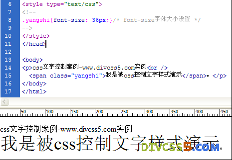 首先設置了font-size的值為36px,則下面結果顯示字體比較大。