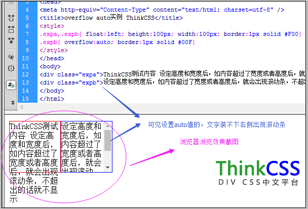 css設置overflow:auto後超出高度或寬度出現滾動條當對象元素設置overflow:auto後,如果對象內的內容(圖片或文字