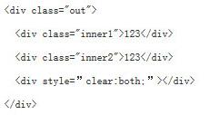 如果有一個DIV作為外部容器,內部的DIV如果設置了float樣式,則外部的容器DIV因為內部沒有 clear,導致不能被撐開。看下面的例子: