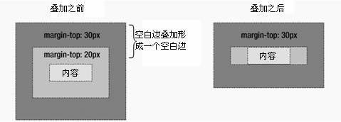 當一個元素包含在另一個元素中時(假設沒有填充或邊框將邊界分隔開),它們的頂和/或底邊界也發生疊加,見圖: