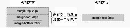 盡管初看上去有點兒奇怪,但是邊界甚至可以與本身發生疊加。假設有一個空元素,它有邊界,但是沒有邊框或填充。在這種情況下,頂邊界與底邊界就碰到了一起,它們會發生疊加,見圖: