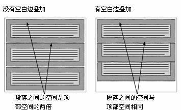 這就是一系列空的段落元素占用的空間非常小的原因,因為它們的所有邊界都疊加到一起,形成一個小的邊界。