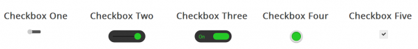 此復選框風格像樣式一樣,但不同的是,這個滑塊按鈕會改變顏色。當您單擊滑塊按鈕,它移動到條帶的另一邊,並改變按鈕的顏色。