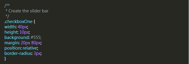 然後,我們用相同的方式把div作為滑塊,下面的代碼會創建一個黑色圓角的條帶,我們可以把滑塊和文本放到裡面。