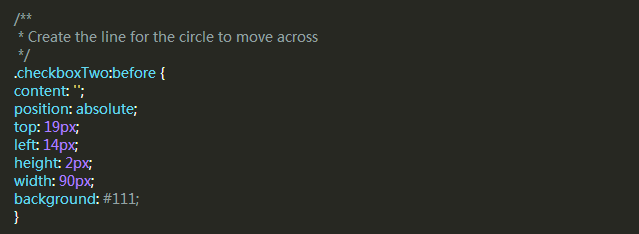 這個樣式中間有一個黑色的條,滑塊會沿著它左右滑動,但是DIV元素已經使用了,所以我們需要用:before偽類創建一個新的元素。