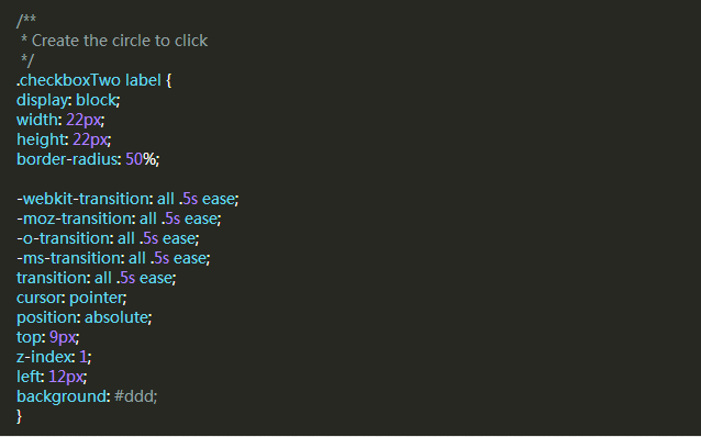 接下來我們要為checkbox創建外面的圓形,使用CSS的border-radius屬性,並且設置為100%就可以創建一個正圓形。